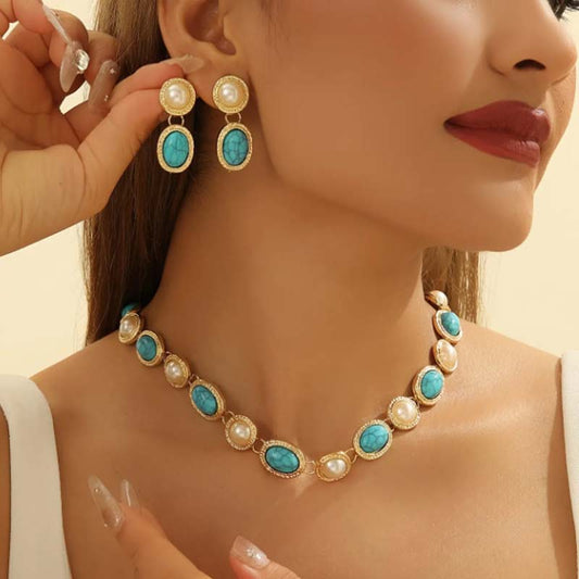 Retro-Stiftöhrringe und Halskette-Set für Damen