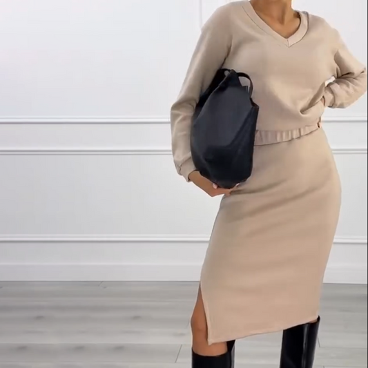 🎁🧥Zweiteiliges Set mit V-Ausschnitt und Schlitz aus Strick