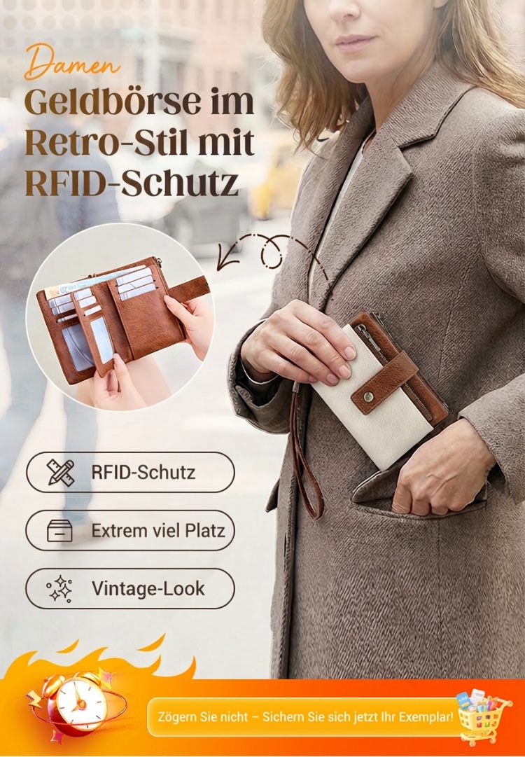 🔥Zeitlich begrenztes Angebot – Damen-Geldbörse im Retro-Stil mit RFID-Schutz, dreifach gefaltet