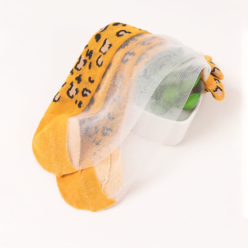 Lieferumfang: 5 Paar Ultradünne Mesh-Socken mit Leopardenmuster