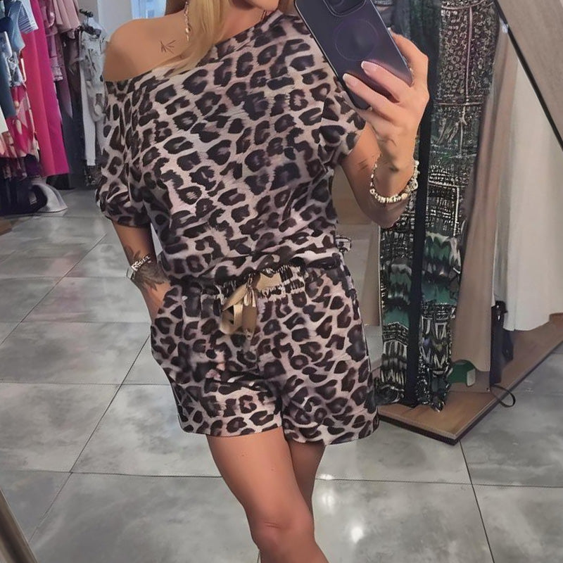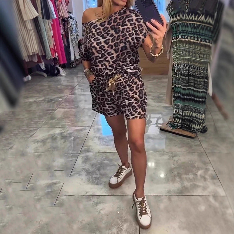 TRENDIGES LEOPARDENMUSTER-DESIGN – Zeigen Sie Ihre wilde Seite mit dem Leopardenmuster-Set aus Off-Shoulder-Top und Shorts. Die lockere, legere Passform sorgt für hohen Tragekomfort und verleiht Ihnen gleichzeitig einen schicken Look – ideal für jeden entspannten Anlass.