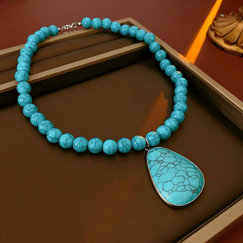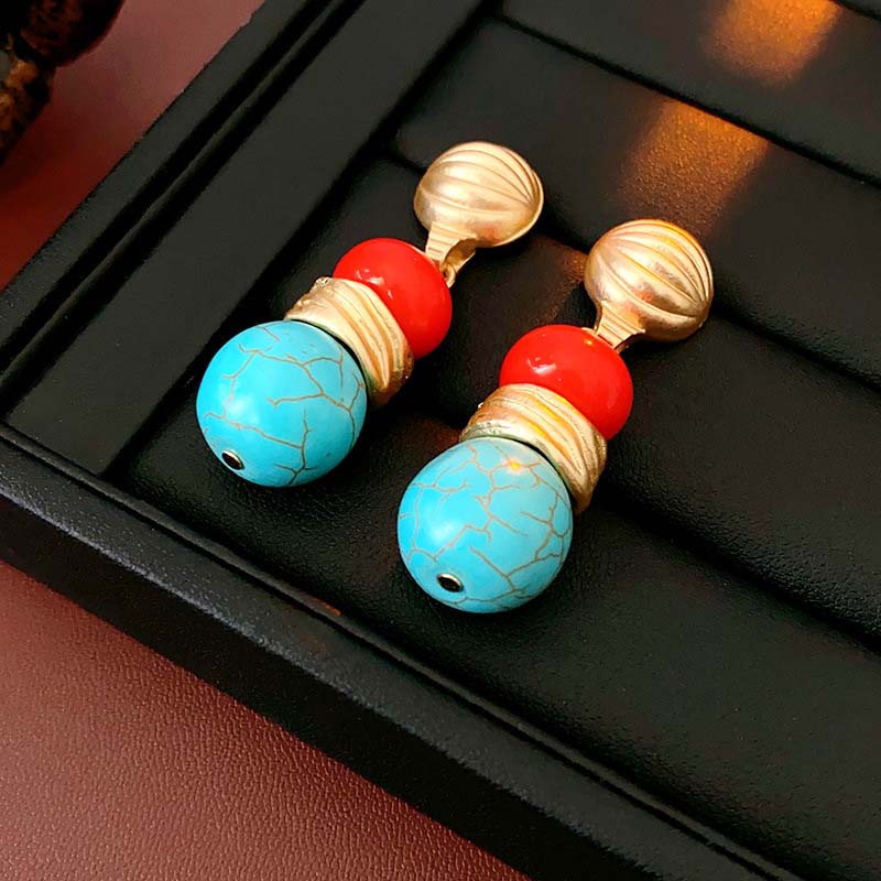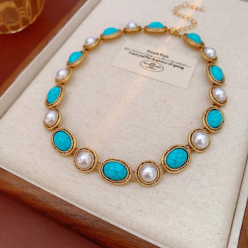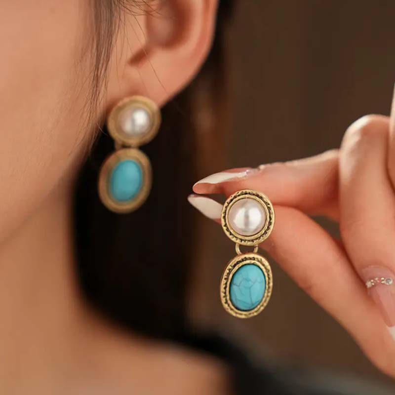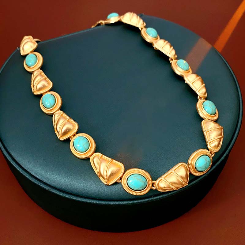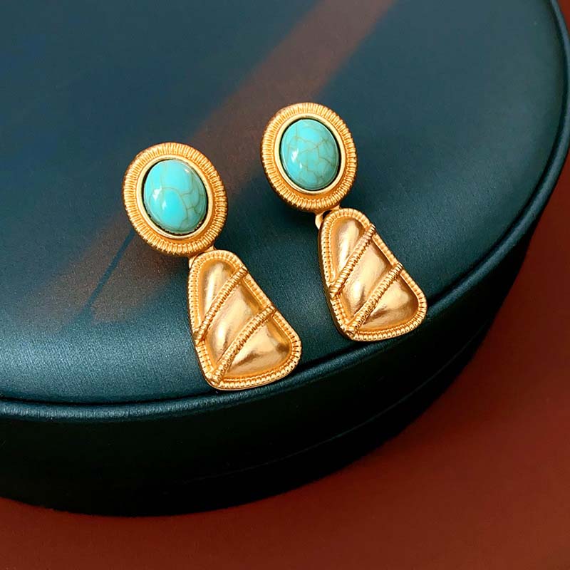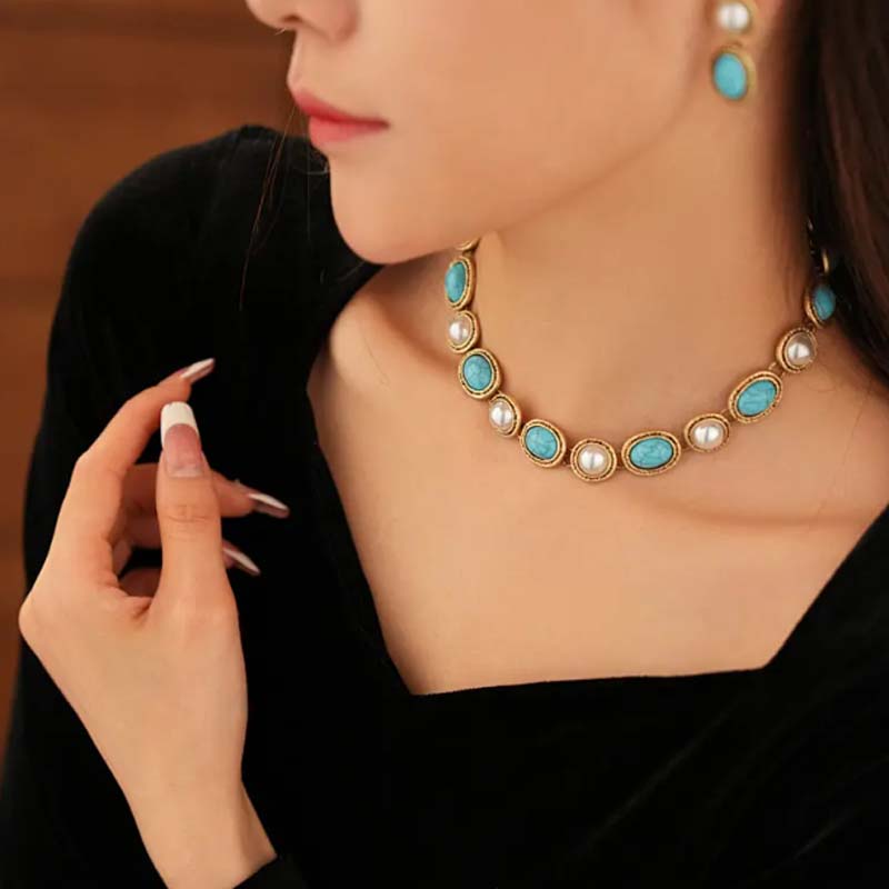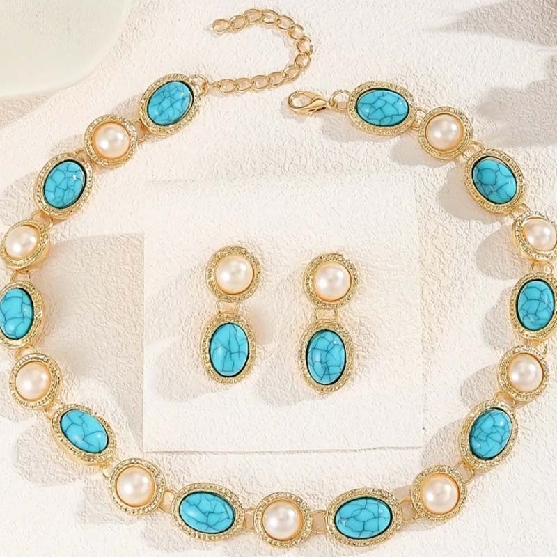 Retro-Stiftöhrringe und Halskette-Set für Damen