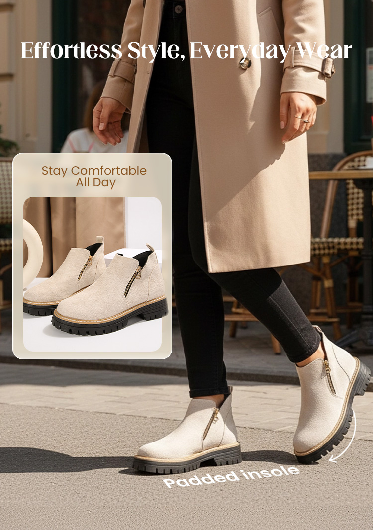 🔥Black-Friday-Mega-Angebot – 50 % Rabatt!🥾✨Damenschuhe mit runder Spitze und Reißverschluss, für alle Fußformen geeignet