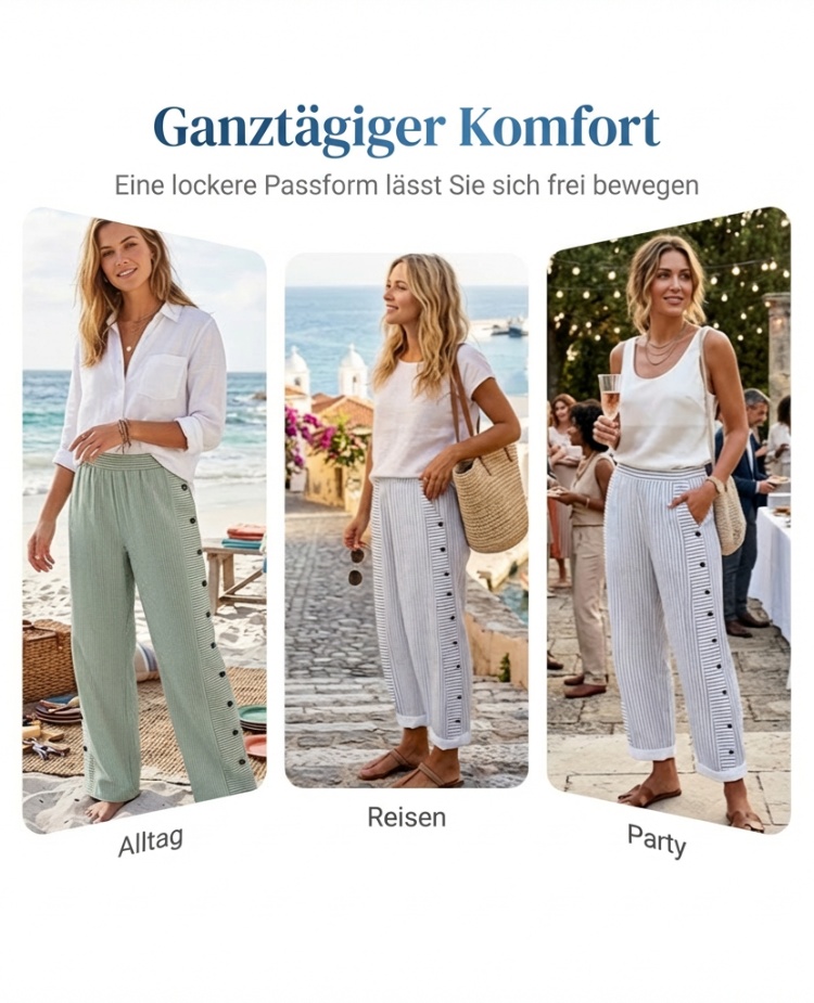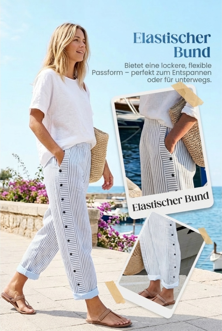 ☀️ Frühlings-Hot-Sale 50 % RABATT!! 🌿🌸 Bequeme blau gestreifte Hose mit Seitentaschen