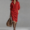 SCHMEICHELHAFTER GERADER SCHNITT: Das Kleid ist in einem entspannten, aber strukturierten geraden Schnitt gefertigt, der sanft über den Körper fällt. Dies sorgt für eine schlanke, verlängerte Optik und gleichzeitig für bequeme, uneingeschränkte Bewegungsfreiheit – den ganzen Tag über.