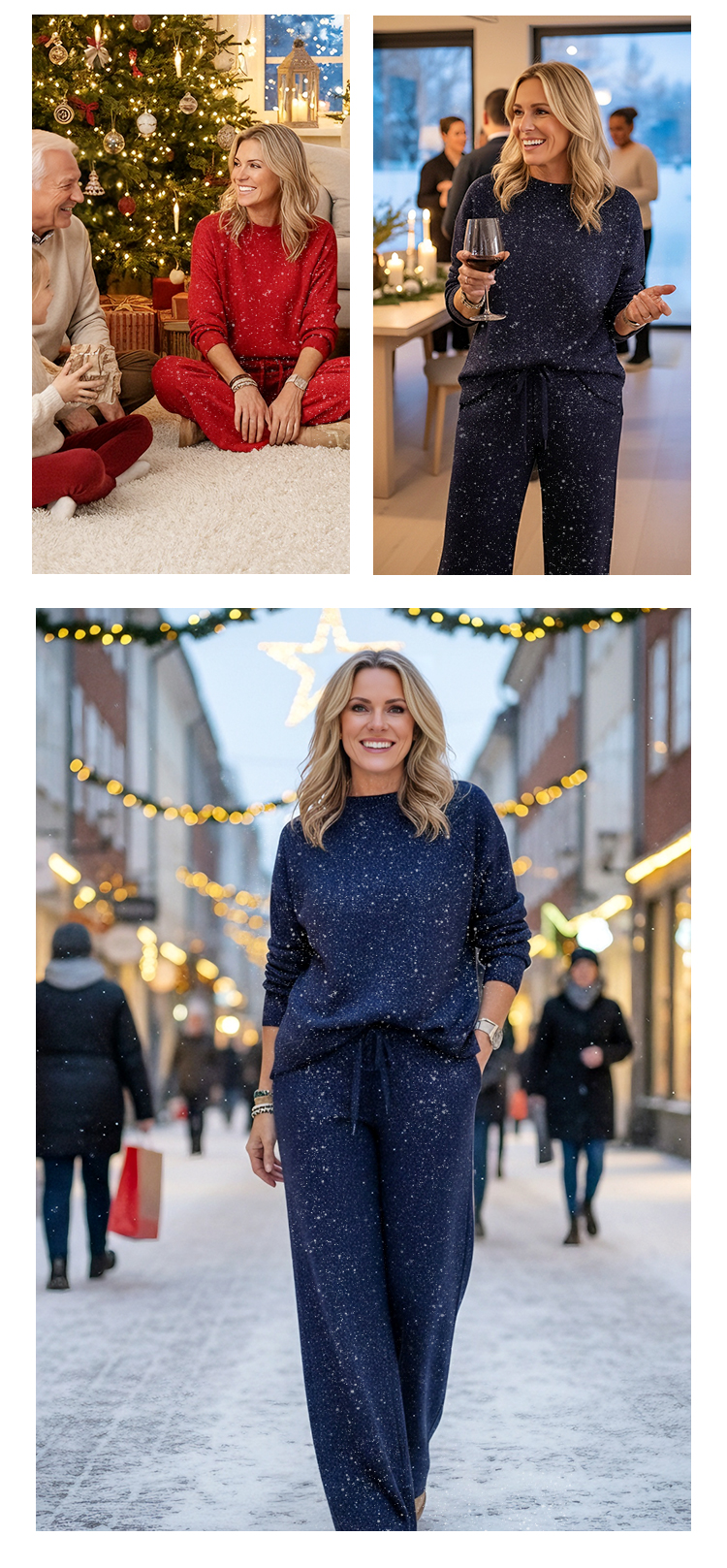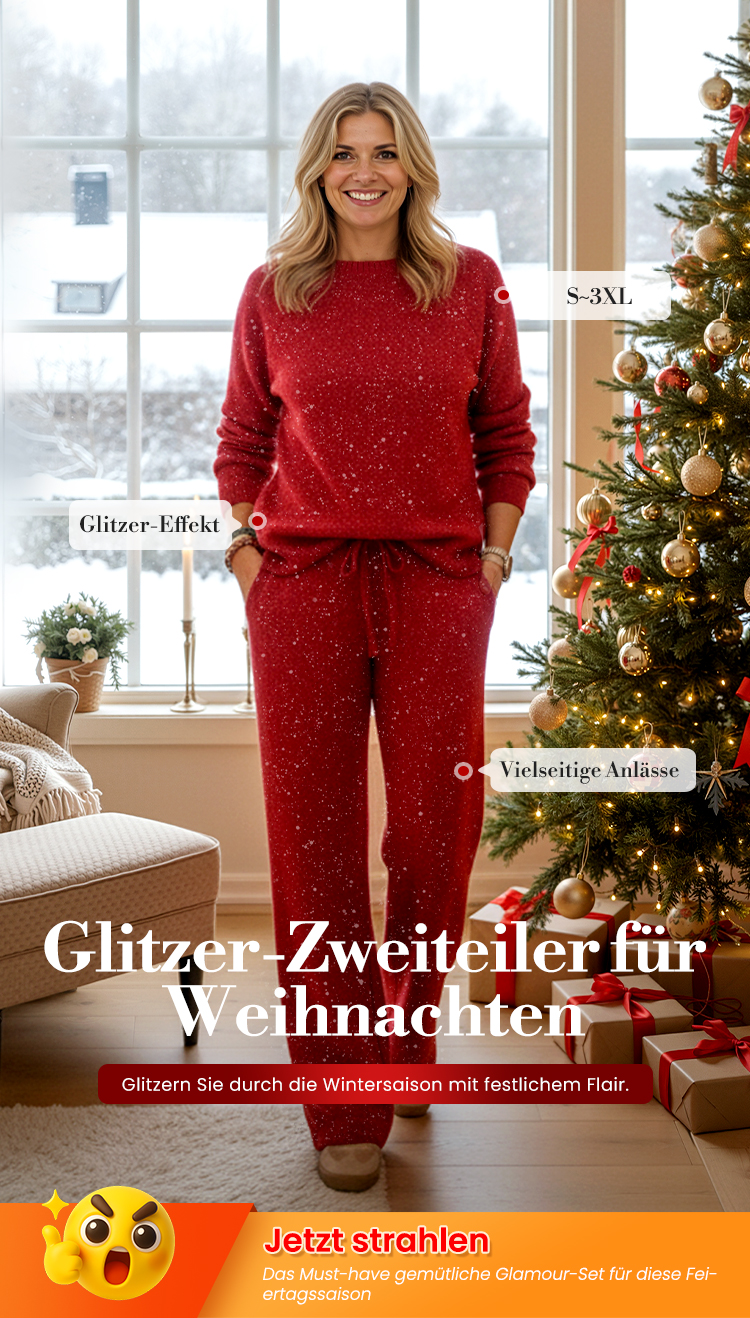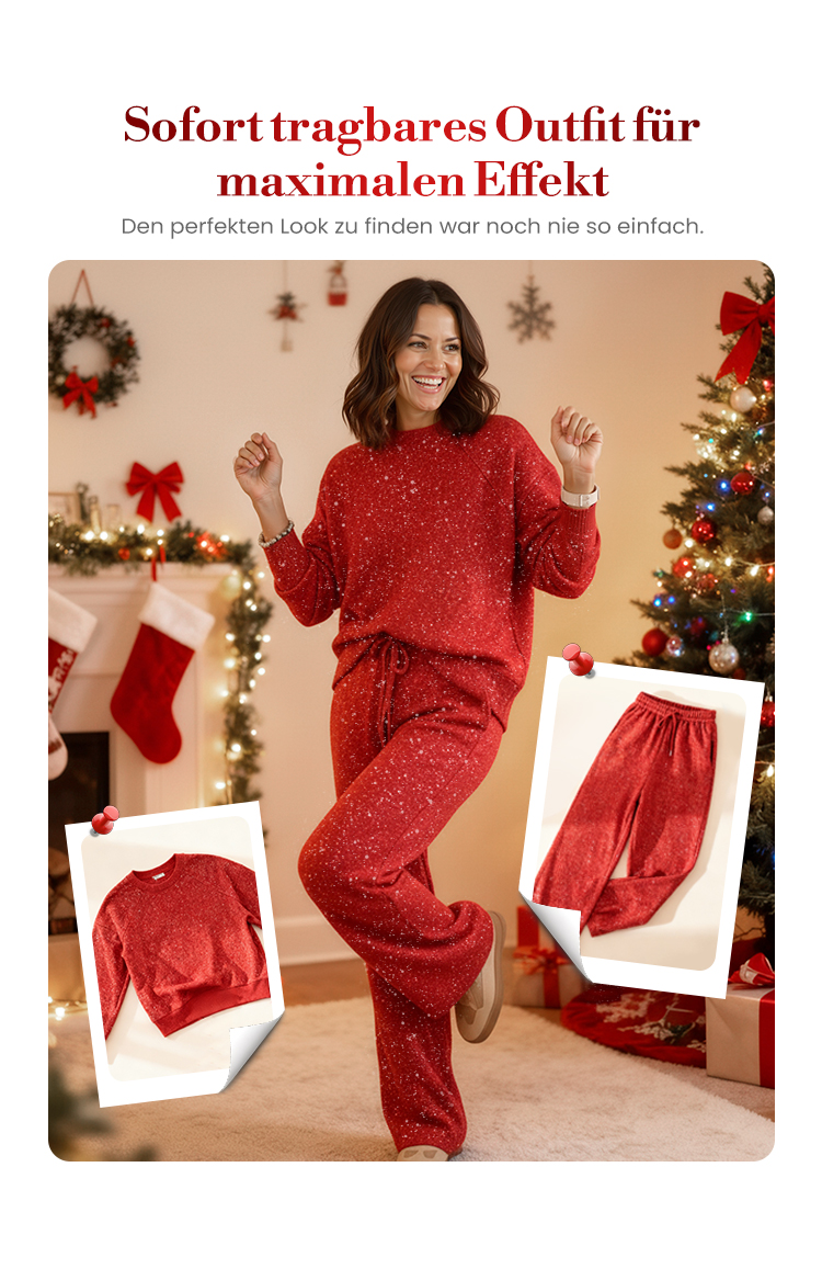 ⏳ Letzter Tag: 50 % auf das gesamte Sortiment! ⏰ Damen-Glitzer-Weihnachts-Zweiteiler: Sweatshirt & Hose