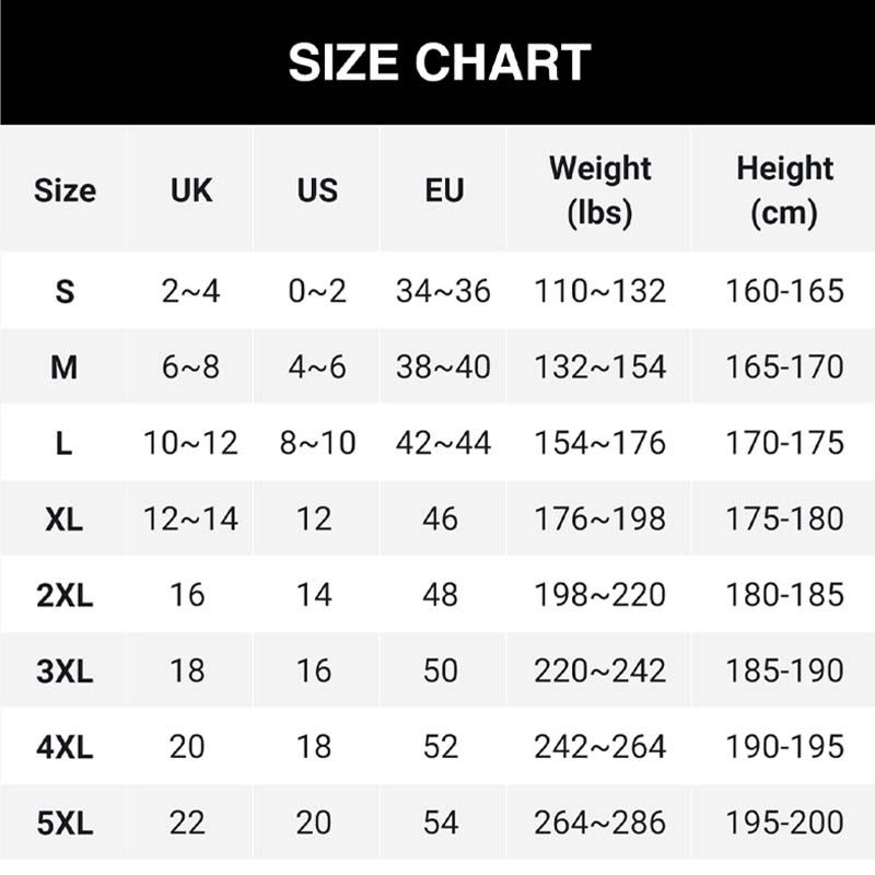 Größen: S, M, L, XL, 2XL, 3XL, 4XL, 5XL